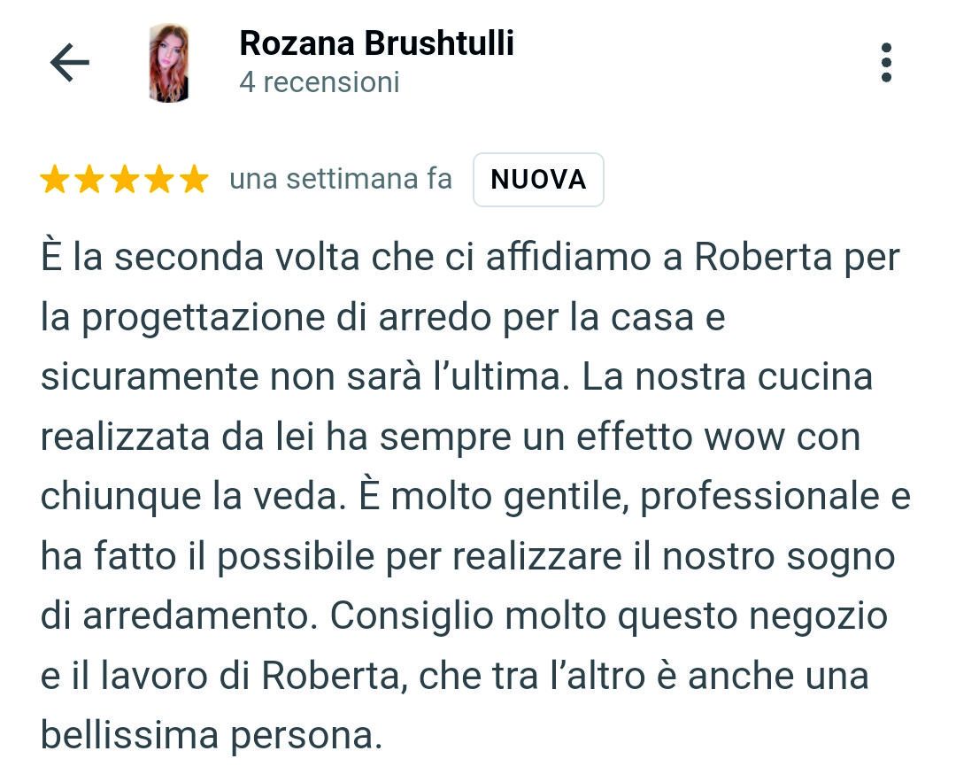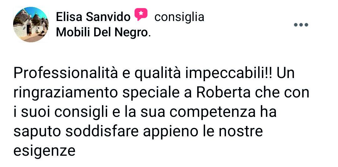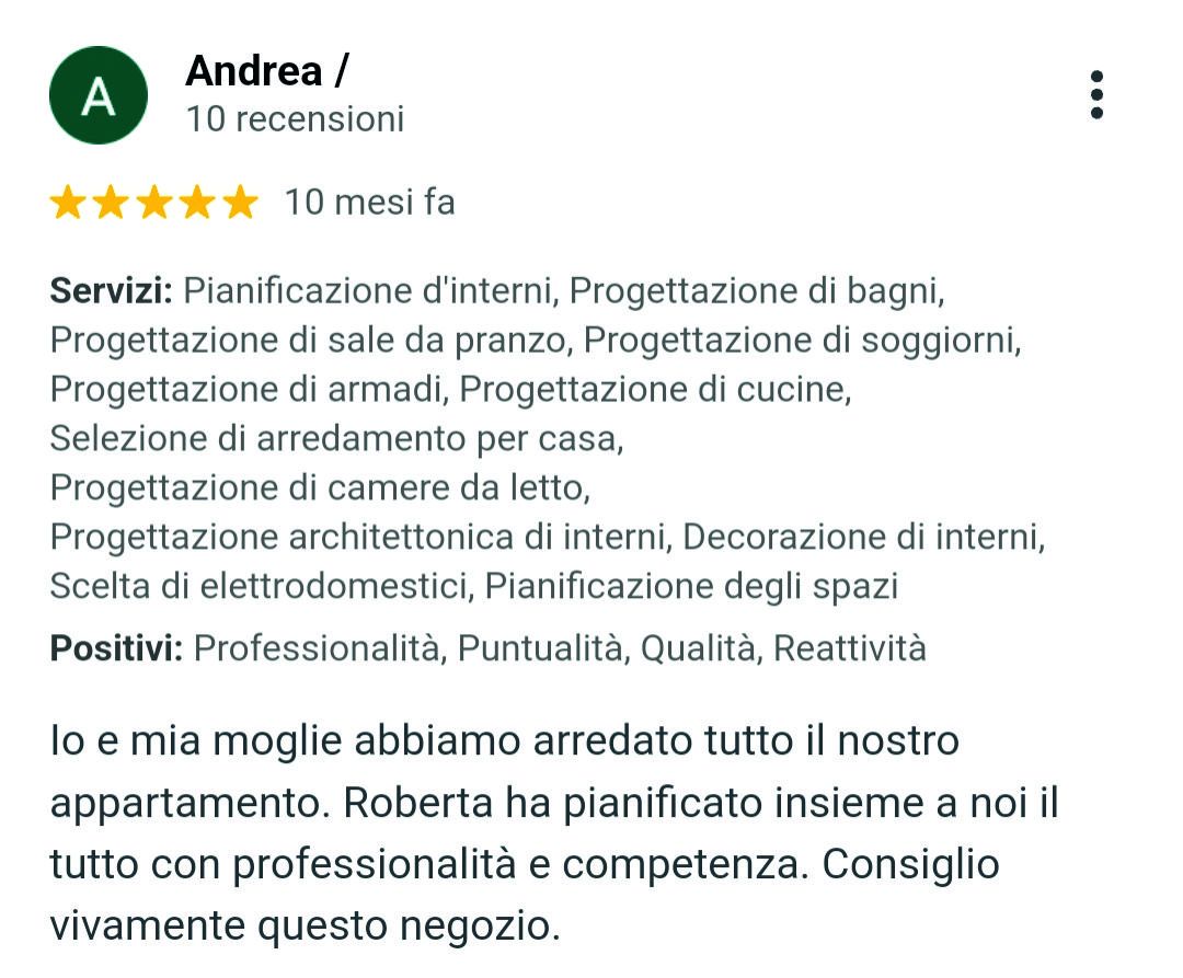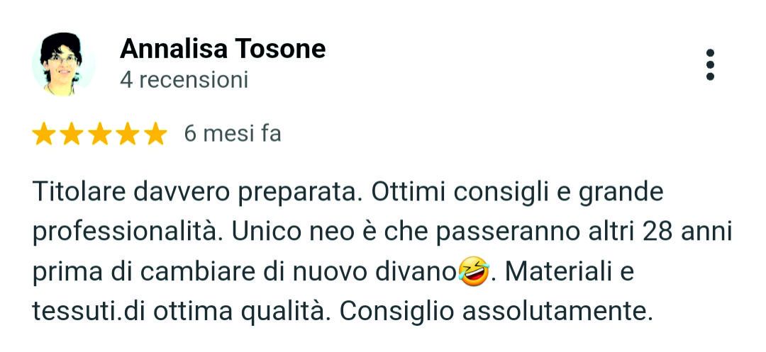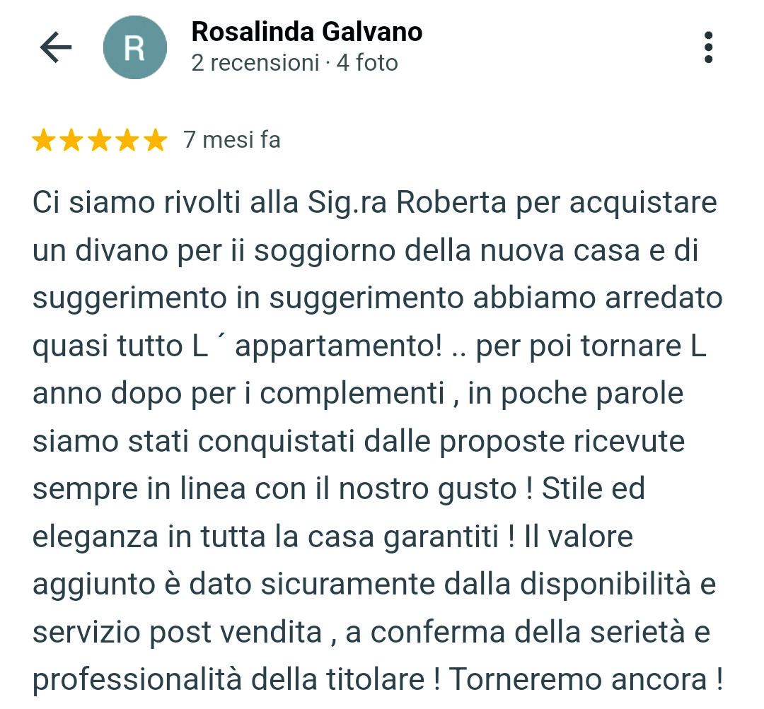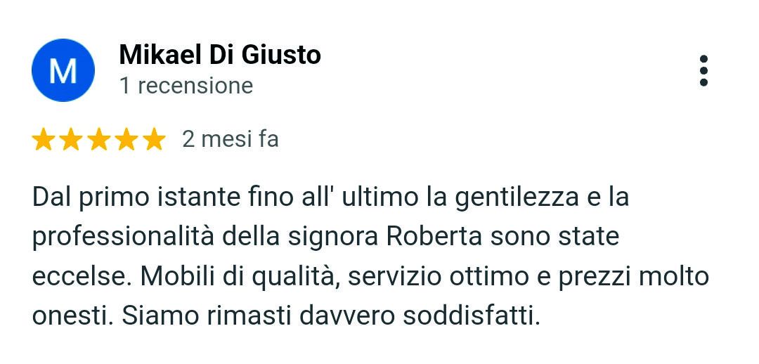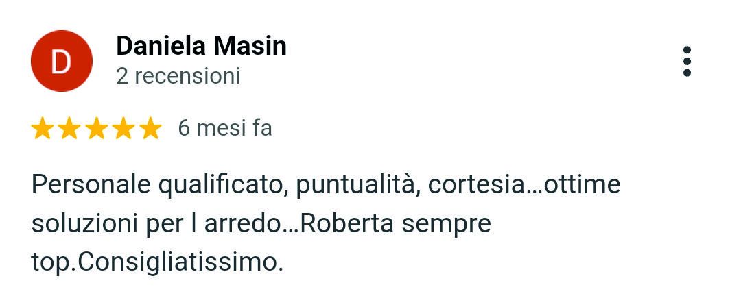 Verrai accolto da me, Roberta, che sono la titolare, ti seguirò personalmente in ogni fase della scelta del tuo nuovo arredamento e sarò a tua disposizione per darti consigli e per rispondere a tutte le tue domande.